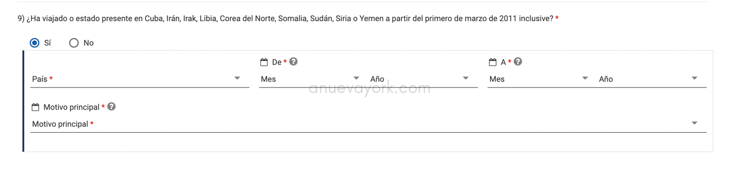 El problema es que la pregunta junta Cuba con otros países y pone como fecha límite marzo de 2011. Pero, si respondes que sí, verás que te deja elegir cuándo viajaste a Cuba. Si fue antes del 12 de enero de 2021, no habrá problema.